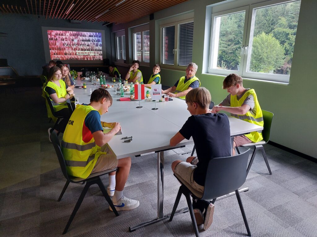 Uns wurde die Firma mit einer Präsentation vorgestellt, wir bekamen eine Führung durch das Werk, unsere Schüler durften ihr Könnenmit einer Challenge unter Beweis stellen und zum Abschluss gab es eine gute Jause und ein paar Präsente. Wer denkt schon daran, dass wir beinahe jedes Telefongespräch über ein  Kabel, gefertigt von Extrudermaschinen von Rosendahl führen oder jede Batterie für die Harley Davidson-Motorräder auf Rosendahl-Maschinen montiert werden.